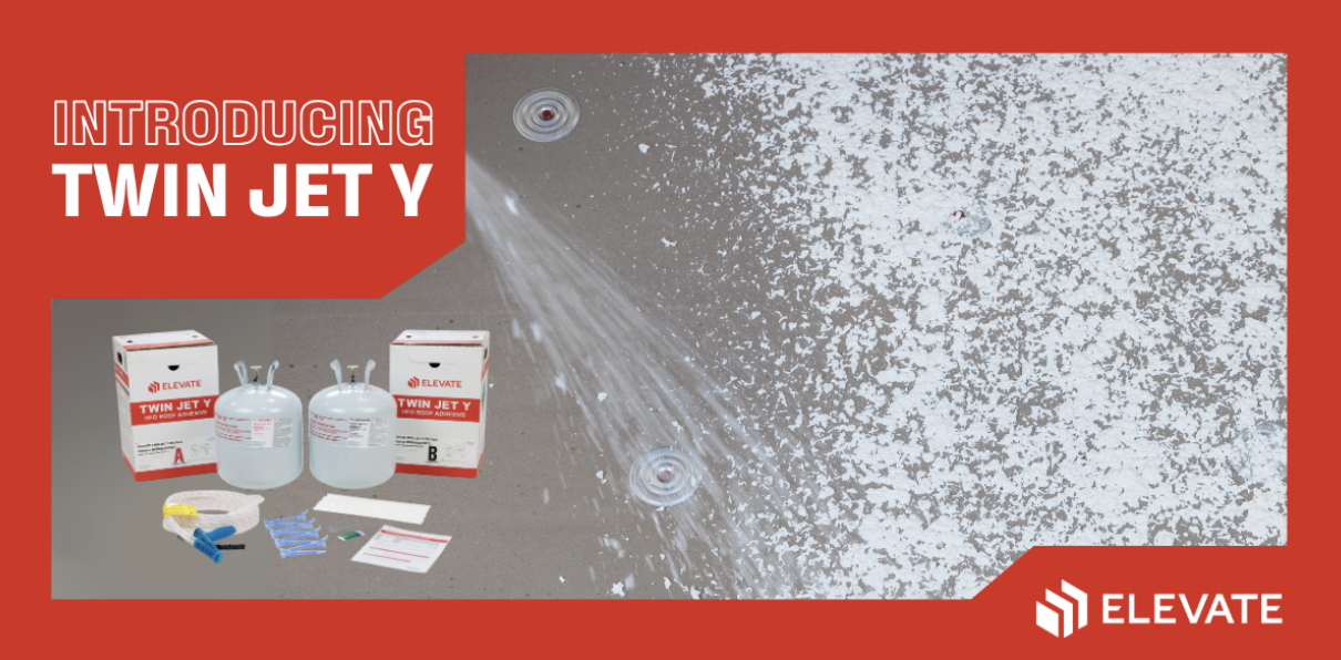 We’re proud to share the launch of Twin Jet Y, the industry’s first* FM-approved spatter pattern adhesive in canisters for board-to-board applications. This innovative solution from Elevate offers unmatched performance, combining efficiency, versatility, and sustainability into one powerful product.